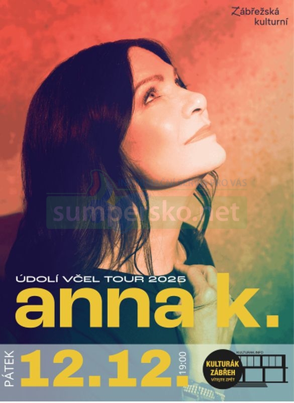 Zábřežská kulturní zve na přeložený koncert zpěvačky Anny K., který se uskuteční v pátek 12. prosince od 19 hodin ve velkém sále kulturního domu. Koncert, jenž musel být z důvodu onemocnění jednoho z členů kapely přesunut z původního listopadového termínu, zůstává programově i obsahově beze změny a slibuje výjimečný předvánoční hudební zážitek.