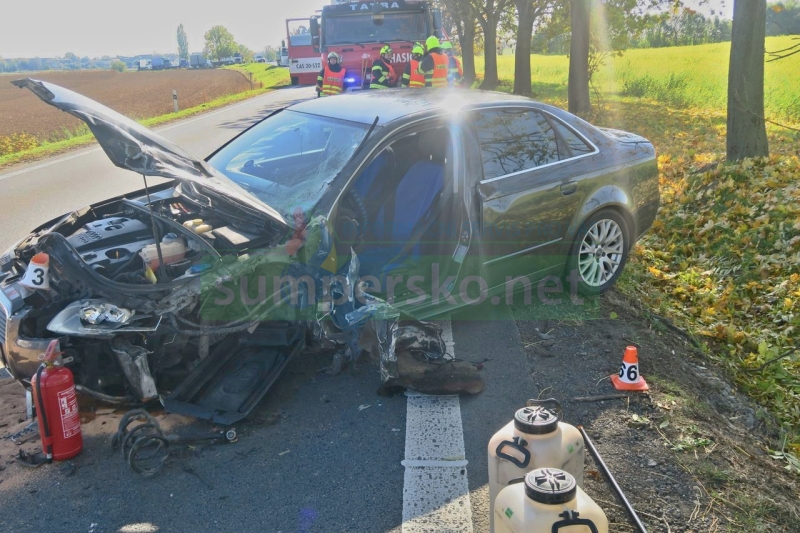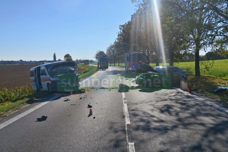 Řidič vozidla Audi v seniorském věku z dosud nezjištěných příčin přejel do protisměrné části vozovky. „Čelně narazil do převozové sanitky VW Transportér. V té době převážel řidič sanitky tři pacienty, kteří neutrpěli žádná zranění,“ uvedla tisková mluvčí policie Olomouckého kraje Miluše Zajícová, která upřesnila: „ Zraněn byl řidič a jeho spolujezdec z osobního vozidla.“