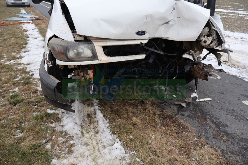 „Jednapadesátiletý řidič Fordu Transit se při jízdě po přímém úseku komunikace plně nevěnoval řízení a s vozidlem přejel do protisměru, kde se čelně střetl s vozidlem Mercedes-Benz,“ uvedla tisková mluvčí policie Olomouckého kraje Ivana Skoupilová.