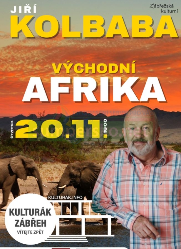 Známý fotograf a dobrodruh Jiří Kolbaba přiveze ve čtvrtek 20. listopadu do zábřežského domu kultury fascinující cestovatelskou prezentaci o místech, která lákají svou divokostí i krásou – o Keni, Tanzanii a Zanzibaru.