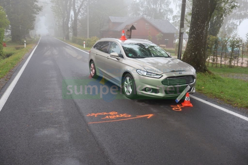 Po osmé hodině ve čtvrtek 2. října došlo na silnici č. II/453 ve Zlatých Horách části Rejvíz ke střetu vozidla s chodcem.