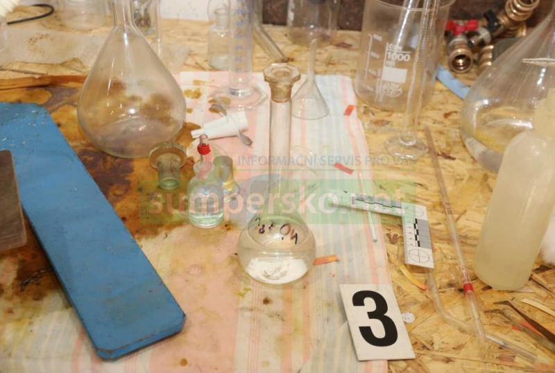 „Policisté v sobotu řešili v rodinném domě na Litovelsku občanské soužití, kdy měl pětatřicetiletý muž verbálně a potom také fyzicky napadnout svoji manželku. Při řešení tohoto případu narazili na varnu a na místo si proto přivolali kriminalisty. Ti v garáži u domu objevili laboratorní sklo a chemikálie, jako například červený fosfor nebo kyselinu fosforečnou, které se využívají k výrobě drog. Jak kriminalisté zjistili, obviněný si měl minimálně od letošního ledna na adrese svého bydliště vyrobit přesně nezjištěné množství metamfetaminu, tzv. pervitinu. Ten nejen užíval pro svoji potřebu, ale v několika případech jej měl také předat další osobě,“ uvedla tisková mluvčí policie Olomouckého kraje Ivana Skoupilová, které upřesnila:“ Za uvedený přečin mu v případě prokázání viny a odsouzení hrozí trest odnětí svobody na jeden rok až pět let.“