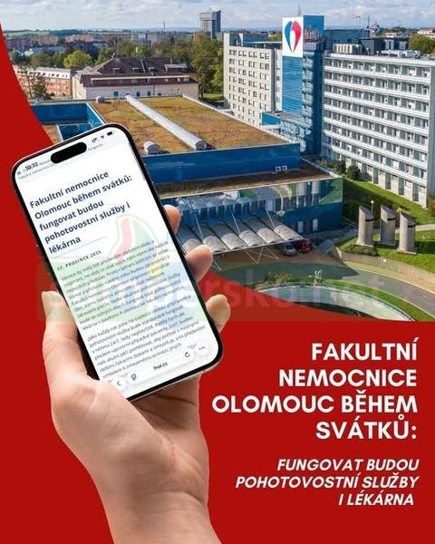 Vánoce by měly být především obdobím klidu a rozjímání, ne vždy to však vyjde nám všem dle našich nejlepších představ. Proto i během blížících se oslav Vánoc a příchodu nového roku budou zdravotníci z Fakultní nemocnice Olomouc připraveni pomáhat těm, komu sváteční atmosféru zkalí nečekané zdravotní potíže. Vedle lékařské pohotovostní služby bude ve volných dnech fungovat také pohotovostní lékárna v pavilonu A olomoucké fakultní nemocnice.