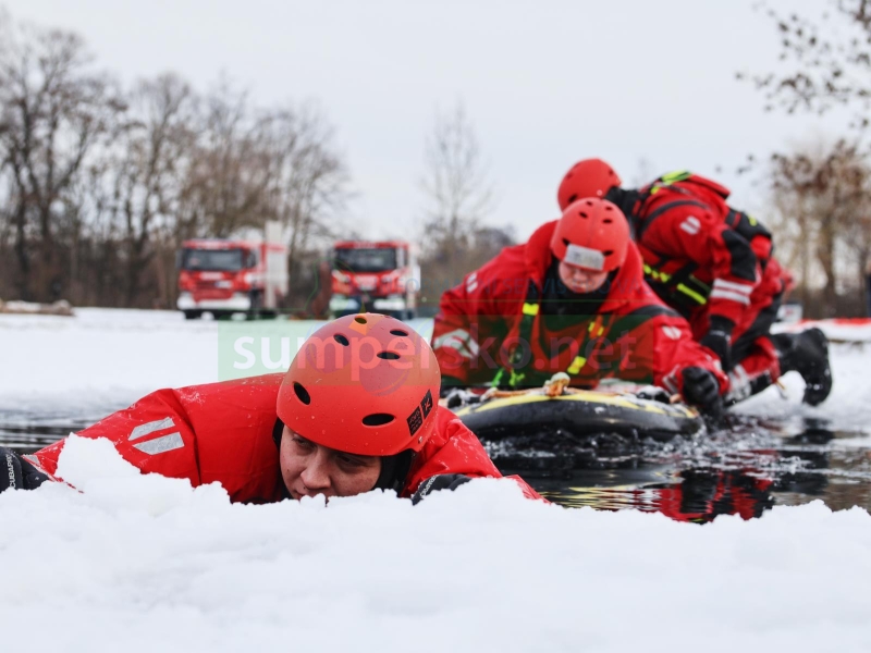 V zimních měsících všichni hasiči zařazení ve výjezdových jednotkách absolvují výcvik záchrany z ledu.