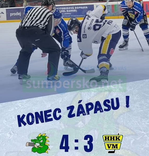 Šumperští hokejisté tahali ve středu 8. října od samého začátku za kratší konec lana a brzy prohrávali už o dvě branky. Díky dvojnásobné přesilovce ale dokázali ještě v první třetině snížit. Zlom přišel ve druhé dvacetiminutovce, kdy kapitána Draků nešťastně zasáhl puk do oblasti hlavy. Po delším přerušení sice Velké Meziříčí znovu odskočilo do dvoubrankového vedení, Draci se však dokázali semknout a třemi góly v závěru zápas otočili.