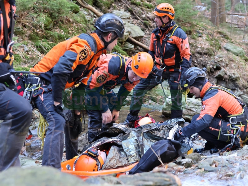 Nejprve měli hasiči vyhledat zraněného turistu v oblasti Vysokého vodopádu a dostat jej jeho zamrzlým korytem na místo setkání se záchrannou službou. „Velké převýšení, nepřístupný, zarostlý, kamenitý a ledový terén přesun pacienta značně komplikoval. Lezci tak museli využít několik typů lanových technik, aby muže ve speciálních nosítkách Sked dostali do bezpečí. Nejvíce komplikovaný byl transport kolem vodopádu, kde využili lanový traverz a kladkostroj, čímž usnadnili a urychlili přesun. Během noci si hasiči vyzkoušeli vyhledávání osob v horském terénu, za snížené viditelnosti, v mrazu a nepříjemných klimatických podmínek,“ přiblížila mluvčí.