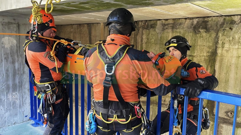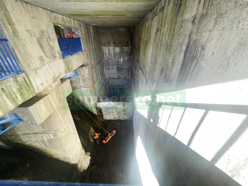 Třetí scénář pak zavedl oba týmy do prostor elektrárny Dlouhé stráně. „Ve Sdruženém objektu v dolní nádrži, do něhož ústí odpadní tunely od turbín přečerpávací vodní elektrárny, se zranili na dvou místech dva servisní technici. Jednoho z nich dostávali lezci z útrob malé vodní elektrárny, která je součástí dvanáctipatrového objektu, z něhož je většina pod vodou. Pomocí trojnožky a lanových technik jej ze složité technologie vyprostili. Druhého pak museli vysvobodit z přepadové šachty. Za využití různých lanových technik a postupů jej dostali do bezpečí. Během čtyřiadvacetihodinového výcviku byly díky aktivnímu nasazení všech příslušníků splněny všechny stanovené cíle,“ uvedla Lucie Balážová.