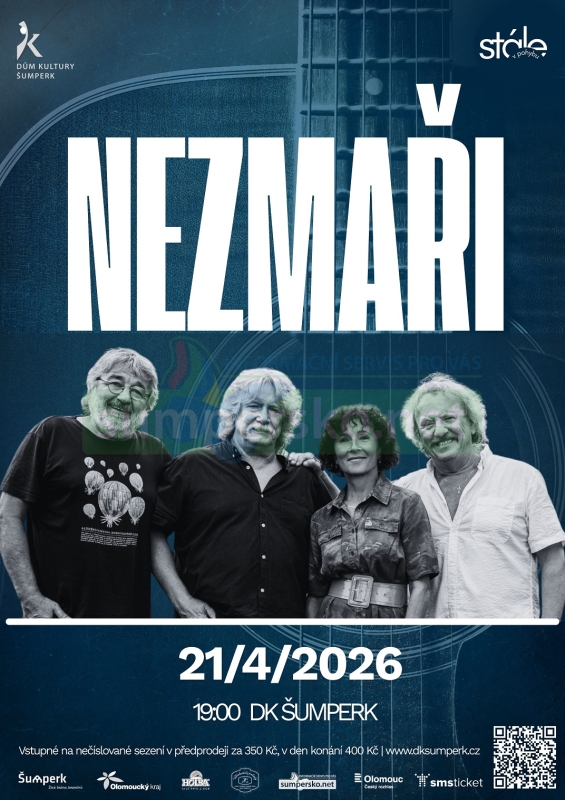 V úterý 21. dubna od 19 hodin ve velkém sále Domu kultury Šumperk zazní nejen známé nezmarovské písničky Ráno bylo stejný, Bodláky ve vlasech nebo Musíš jít dál, ale i několik současných novinek. Vstupenky na sezení lze zakoupit v předprodeji za 350 korun, v den akce poskočí o padesát korun.