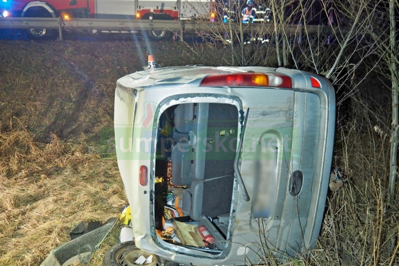 „Padesátiletý řidič vozidla Renault Kangoo zřejmě nepřizpůsobil rychlost jízdy povětrnostním podmínkám a stavu komunikace, která byla v té době namrzlá. Při průjezdu pravotočivou zatáčkou narazil do svodidel, která přejel pravým předním kolem, a vozidlo dále pokračovalo setrvačností několik metrů po svodidlech, až se nakonec přes ně převrátilo dolů ze svahu,“ uvedl tiskový mluvčí policie Olomouckého kraje Jaroslav Herzán, který upřesnil: „ Během převrácení vozidla z tohoto vypadla jednadvacetiletá cestující na zadním sedadle, která jako jediná nebyla připoutaná bezpečnostním pásem. Tato mladá žena utrpěla zranění, se kterým byla převezena do šumperské nemocnice. Ve vozidle se nacházela ještě jedenapadesátiletá žena, která seděla na místě spolujezdce vedle řidiče.“