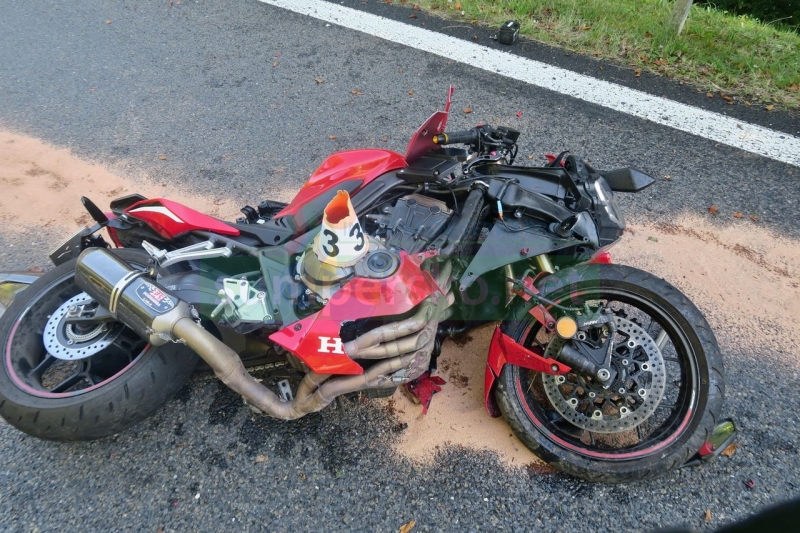 Jednatřicetiletý cizinec jel s motocyklem Honda od Jeseníku na Šumperk. „V zatáčce č. 5 nepřizpůsobil rychlost jízdy, s motocyklem spadnul a narazil do svodidla. Řidič nebyl pod vlivem alkoholu a vyvázl bez zranění,“ uvedl tiskový mluvčí policie Olomouckého kraje Libor Hejtman, který upřesnil: „ Policisté odhadli škodu na motorce na 150 tisíc korun a na svodidle na pět tisíc korun.“