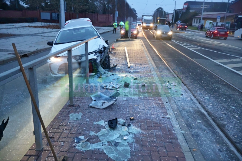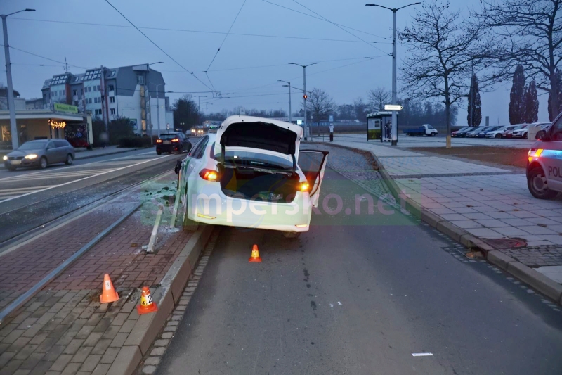 Dvaadvacetiletý řidič toyoty se plně nevěnoval řízení. „Náhle strhl auto vlevo, kde narazil do tramvajové zastávky Krematorium, kterou poškodil,“ uvedla tisková mluvčí policie Olomouckého kraje Ivana Skoupilová.