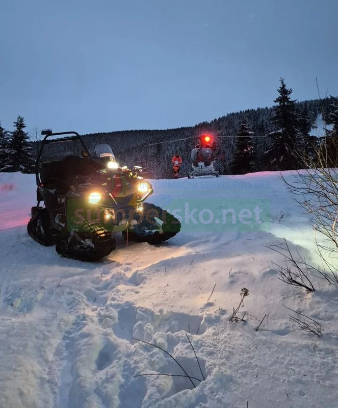 V odpoledních hodinách v úterý 13. ledna vyjížděla posádka Horské služby z Červenohorského sedla. „Nejprve k muži na běžkách, kterému se v terénu udělalo nevolno a postupně se u něj objevily bolesti na hrudi. Po předání pacienta posádce ZZS Olomouckého kraje a LZS Kryštof 09 přišla další výzva,“ uvedl tiskový mluvčí HS Marek Fryš.