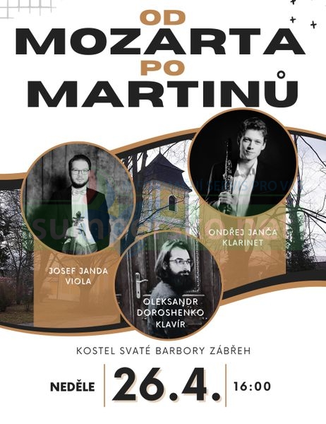 Nedělní odpoledne 26. dubna bude patřit v jedinečném prostoru zábřežského kostela sv. Barbory klasické hudbě. Koncert s názvem Od Mozarta po Martinů nabídne setkání tří výrazných osobností mladé hudební generace.