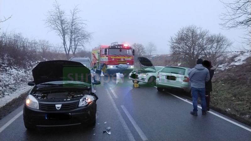 „Hromadnou nehodu registrujeme u Hněvotína, kde se v rozmezí 500 metrů postupně srazilo celkem šest a následné osm aut (bez vážných zranění),“ sdělil Radek Buryánek.