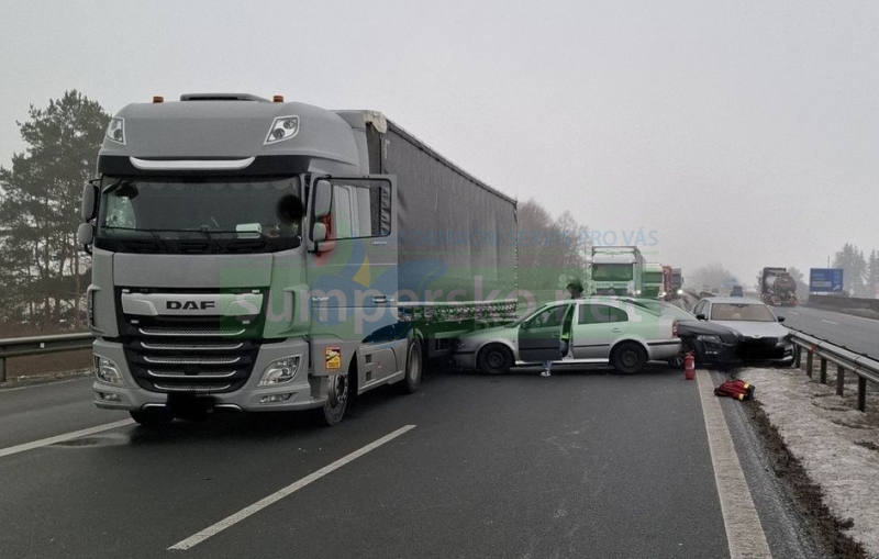 Nehoda nákladního vozidla a dvou osobních vozů blokuje D 35 u Mohelnice