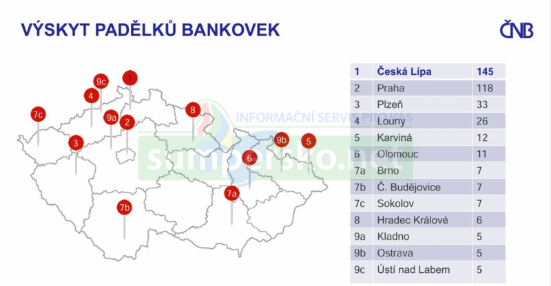 ČNB v roce 2025 označila za padělek 429 českých bankovek v celkové hodnotě téměř 568 tisíc korun. Většina se vyznačovala nízkou kvalitou s napodobením pouze některých ochranných prvků. „Pokud lidé věnují dostatečnou pozornost ochranným prvkům českých bankovek, měli by případný padělek rozpoznat,“ říká členka bankovní rady ČNB Karina Kubelková.