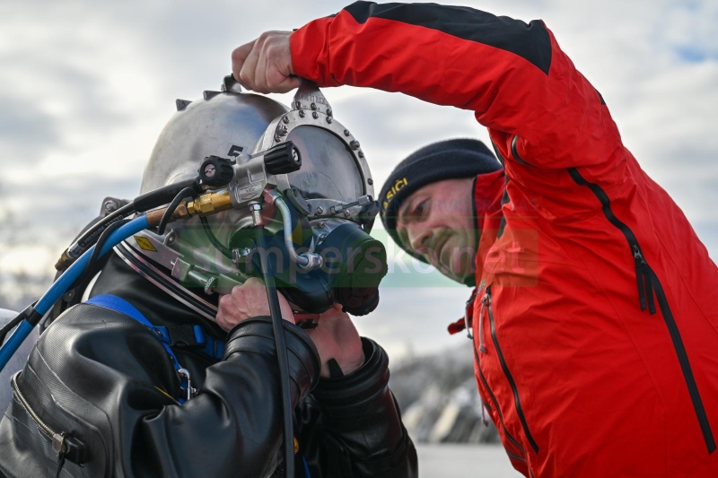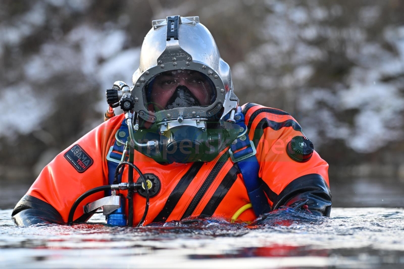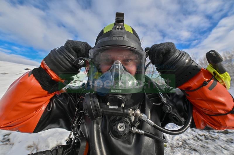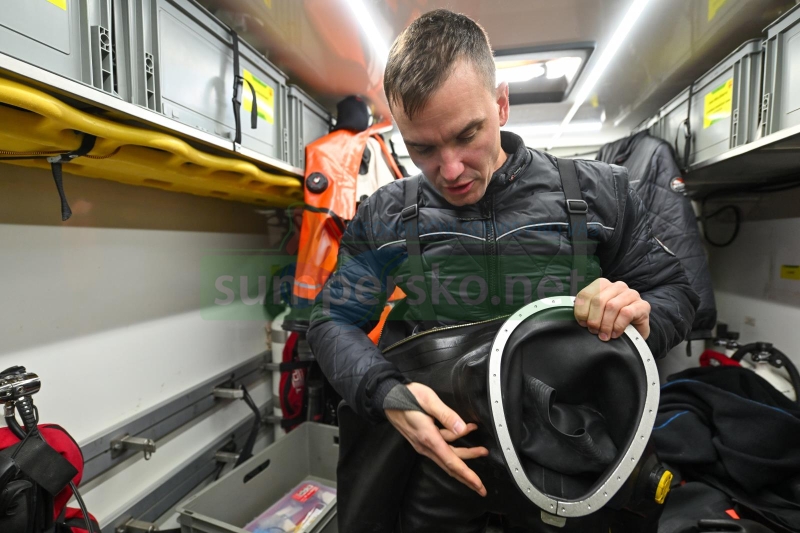 „Jeho cílem bylo prověřit funkčnost speciálního potápěčského systému Kirby Morgan ve velkých hloubkách, ve velmi chladné vodě a v mrazu. Systém tvoří přilba určená pro potápění v nebezpečných, kontaminovaných nebo toxických kapalinách, tedy v prostředí HAZMAT (ze zkratky HAZardous MATerials), hadice pro přívod vzduchu, zásobníky vzduchu a ovládací zařízení – kufr KMACS 5. Ten zajišťuje přívod a regulaci vzduchu pro potápěče a komunikaci s ním,“ uvedla tisková mluvčí HZS Olomouckého kraje Lucie Balážová, která upřesnila: „Během výcviku jsme provedli tři sestupy v pětičlenných skupinách. Každou skupinu tvořil potápěč s přilbou Kirby Morgan, která váží téměř 15 kilogramů, jistící potápěč, který jde pod hladinu souběžně. Třetí ve skupině je návodčí, který je na břehu a spouští potápěče se speciální přilbou na hadici do hlubin, jeho perimetr od břehu je zhruba 100 metrů. Součástí týmu je operátor, který díky ovládacímu kufru po celou dobu sleduje aktuální hloubku a další parametry ponoru. Také může s hasičem v hloubce komunikovat, navádět jej a řešit s ním drobné problémy. Nedílnou součástí skupiny je supervizor, který celé akci velí.“