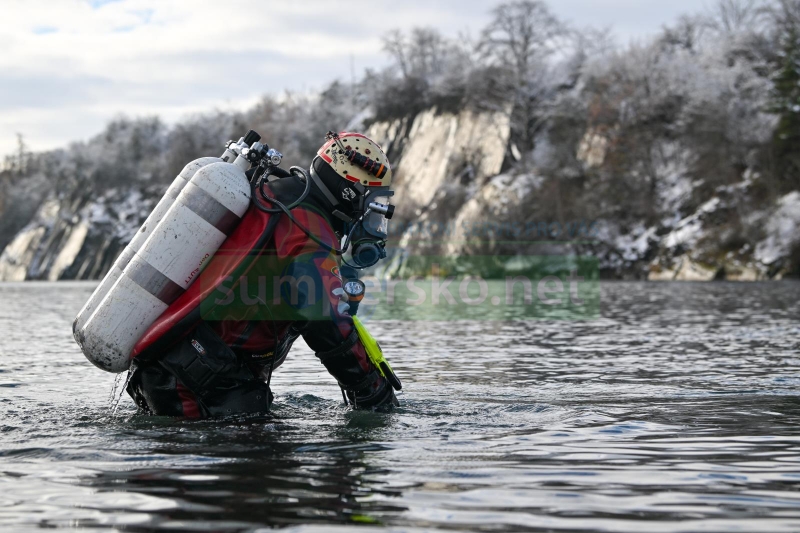 Kulisy jako z ladovské zimy nám zpestřily výcvik potápěčů v lomu Šifr nedaleko Svobodných Heřmanic.