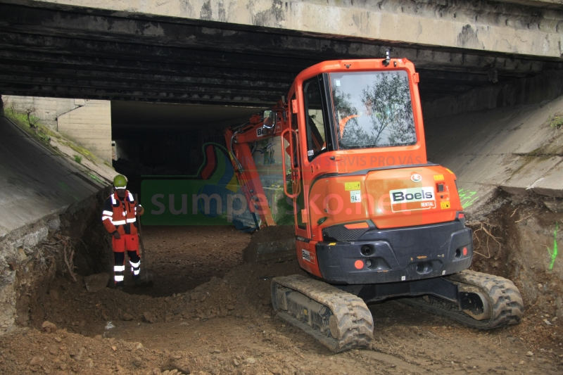 Hloubení podjezdu pod páteřní železniční tratí probíhá za jejího plného provozu