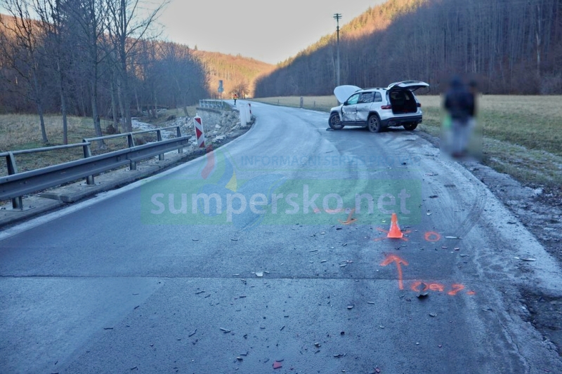 Před osmou hodinou v pondělí 15. prosince došlo na silnici číslo I/60 k dopravní nehodě dvou vozidel. Devatenáctiletý řidič vozidla renault jel ve směru od Vápenné na Lipovou-lázně. „Nepřizpůsobil rychlost jízdy. V zatáčce přejel do protisměru, kde narazil do právě projíždějícího vozidla Mercedes. Po střetu pokračoval renault v jízdě a po 50 metrech narazil do svodidel,“ uvedla tisková mluvčí policie Olomouckého kraje Ivana Skoupilová.