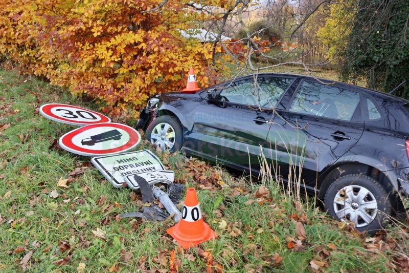 Devětašedesátiletý řidič volkswagenu jel ve směru od obce Hradec Nová Ves k Mikulovicím. „Při vjíždění do levotočivé zatáčky nepřizpůsobil rychlost. Levou přední částí svého vozidla vrazil do dopravní značky a havaroval v příkopu, kde skončil v oplocení,“ uvedla tisková mluvčí policie Olomouckého kraje Ivana Skoupilová, která upřesnila: „ Nehoda se obešla bez zranění.“