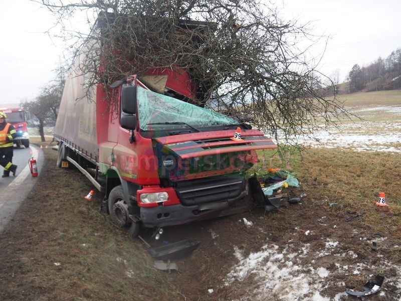 Krátce po třinácté hodině ve středu 4. února hodině došlo v katastru obce Velké Losiny k dopravní nehodě nákladního automobilu DAF.