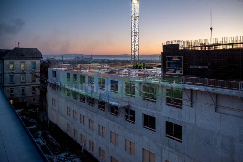 Nový centrální pavilon B, přezdívaný „Franz Josef“, roste doslova před očima. Stavbaři se právě dostali do 5. nadzemního podlaží, které je posledním patrem hlavního objektu. Pokud vše půjde podle plánu, bude hrubá stavba kompletně uzavřená už na konci dubna.