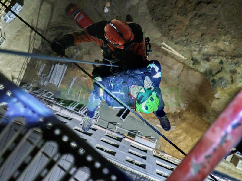 VIDEO: Hasiči-lezci zachránili při výcviku muže z jeřábu