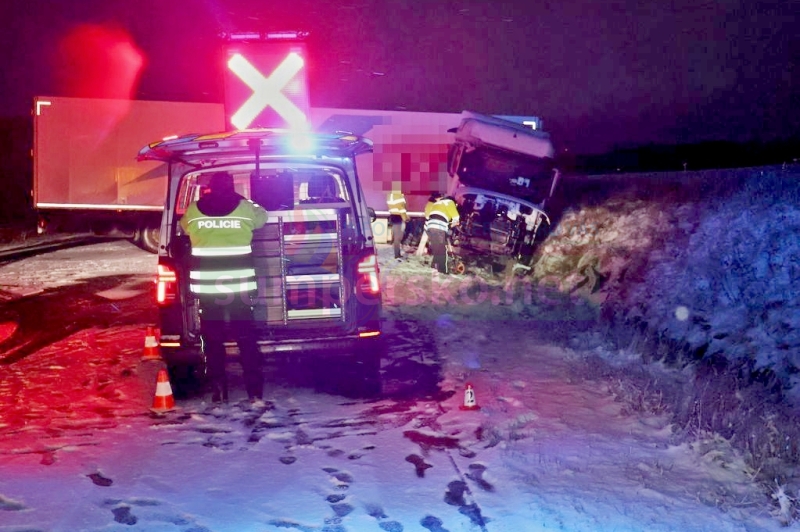 Před šestnáctou hodinou v úterý 30. prosince řidič nákladní soupravy zablokoval provoz na 285. km dálnice D35 u obce Daskabát.
